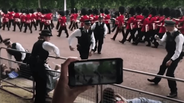 De acuerdo con información de Reuters, los activistas se saltaron las barreras colocadas en The Mall, el gran boulevard que lleva al Palacio de Buckingham, y comenzaron a correr delante de una banda de música.