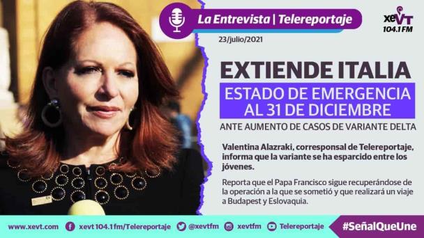 El Gobierno de Italia amplió cinco meses más el estado de emergencia, hasta el 31 de diciembre, debido al aumento de casos COVID-19 en su variante Delta, reportó la corresponsal de Telereportaje en Roma, Valentina Alazraki.