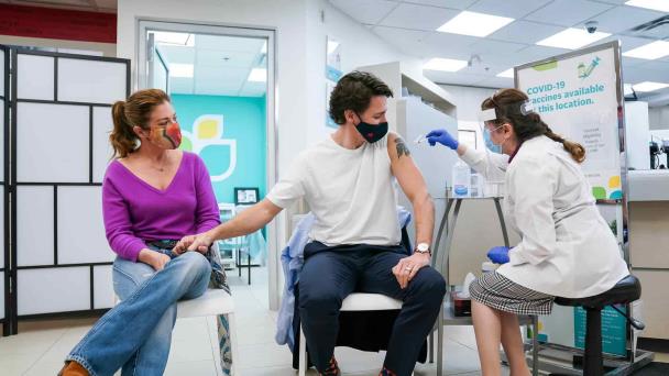 Justin Trudeau y su esposa reciben primera dosis de la vacuna AstraZeneca contra el coronavirus