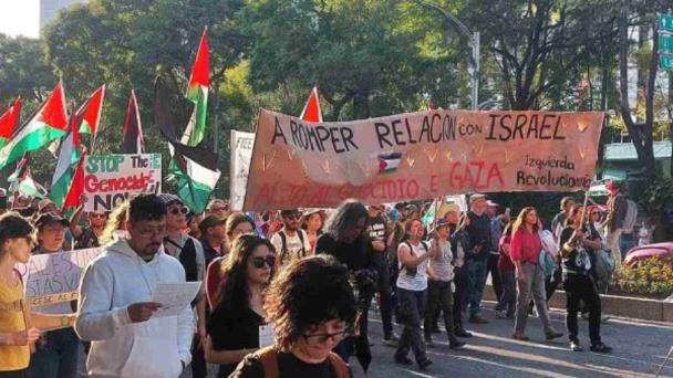 Los manifestantes pidieron el alto al fuego en contra de los palestinos, exigieron sanciones a Israel y a su primer ministro, Benjamín Netanyahu, y que México rompa sus relaciones con esa nación.