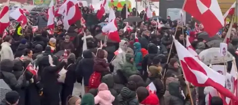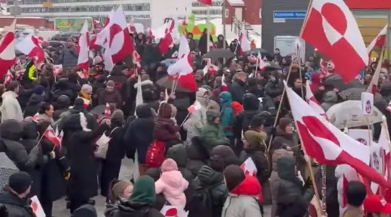 Mientras que, en la capital de Groenlandia, Nuuk, Jens-Frederik Nielsen, primer ministro, se integró a la protesta ondeando la bandera de este territorio autónomo de Dinamarca.
