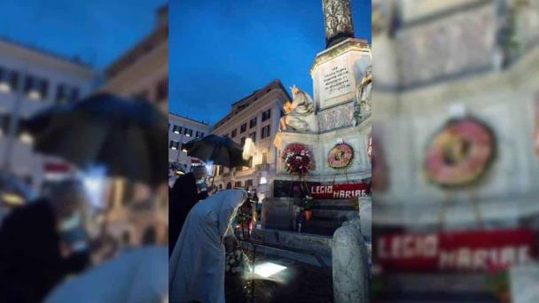 De manera sorpresiva, el Papa Francisco acudió a primeras horas de este martes, en la Solemnidad de la Inmaculada Concepción de la Virgen María, a rezar ante el monumento mariano que se encuentra en la Plaza de España, frente a la Embajada ante Roma.