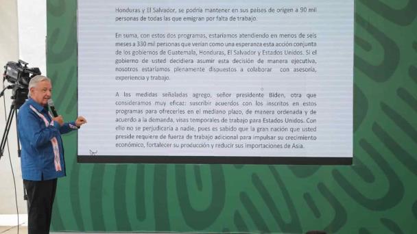 El jefe del Ejecutivo federal planteó a Biden suscribir acuerdos con los ciudadanos centroamericanos que se beneficien de esos programas sociales, para ofrecerles en el mediano plazo, de manera ordenada, y de acuerdo con la demanda, visas temporales de trabajo para Estados Unidos.