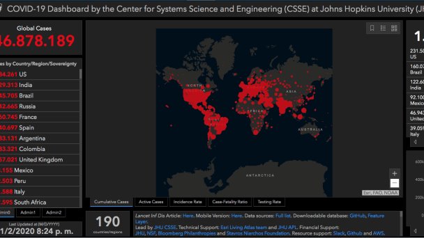 De acuerdo con la Universidad de Johns Hopkins, el mundo registra 46 millones de casos de coronavirus, esto debido a que en las últimas horas se contabilizaron 223 mil 280 personas enfermas; la Organización Mundial de la Salud (OMS), ha solicitado a la población continuar con las medidas de protección.