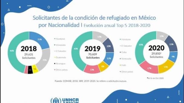 El Alto Comisionado de las Naciones Unidas para los Refugiados (ACNUR) reportó que hasta octubre de 2020 han recibido a través de la Comisión Mexicana de Ayuda a Refugiados (COMAR) más de 32 mil solicitudes de asilo.