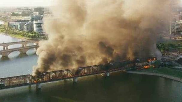 Un tren de carga se descarriló cerca de Tempe, Arizona, en Estados Unidos, lo cual provocó un fuerte incendio y que una parte del puente por donde pasaba se colapsará.