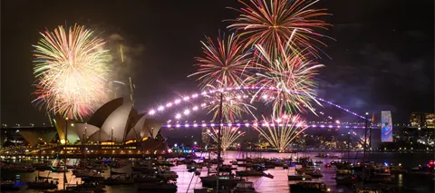 El espectáculo de fuegos artificiales sobre la Ópera de Sídney, así como el Harbour Bridge, acompañado de una presentación de coreografía entre luces y pirotecnia se pudo apreciar desde diferentes puntos de la ciudad.