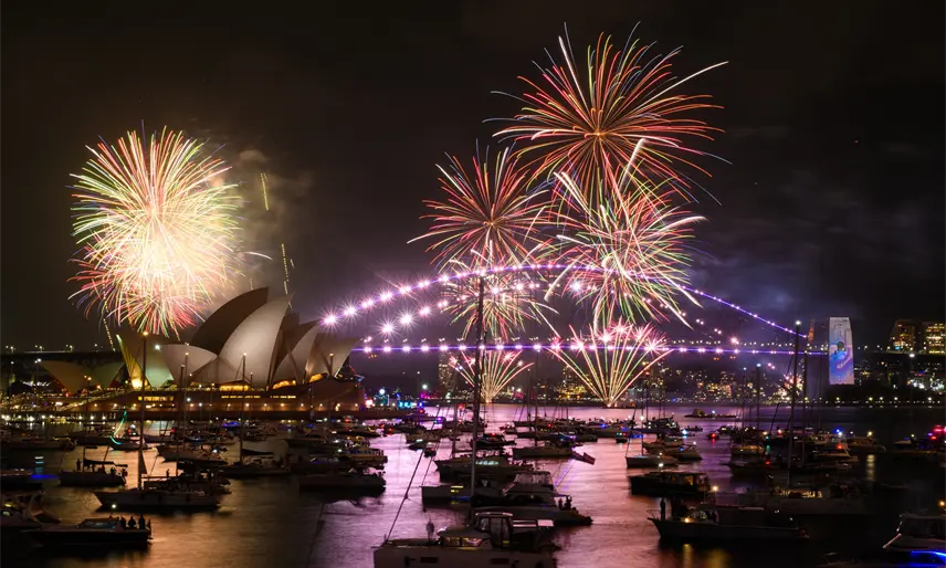 El Año Nuevo fue recibido con un tradicional y espectacular show de fuegos artificiales en el puerto de la capital australiana, uno de los primeros festejos que se realizan a nivel mundial.