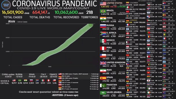 El mundo superó 16 millones 500 mil contagios de Coronavirus, de acuerdo a información del contador Roylab Stats; ajusta 16 millones 501 mil 900.