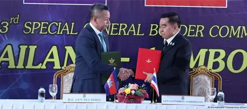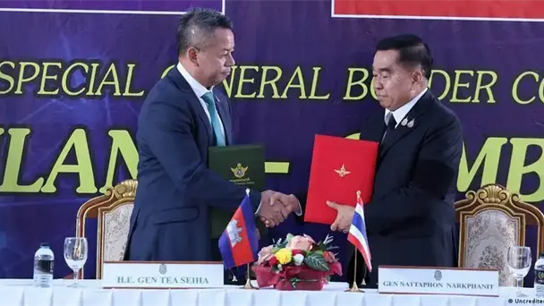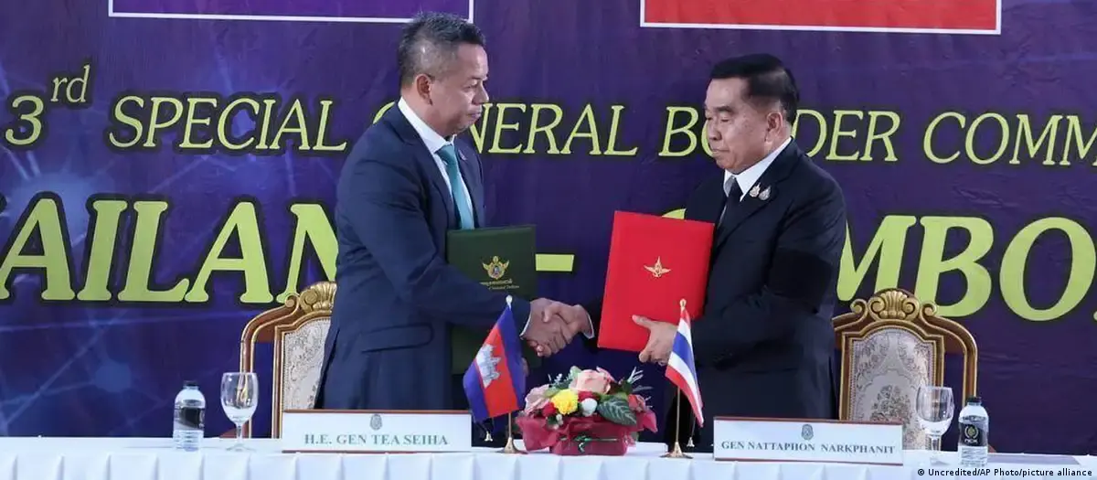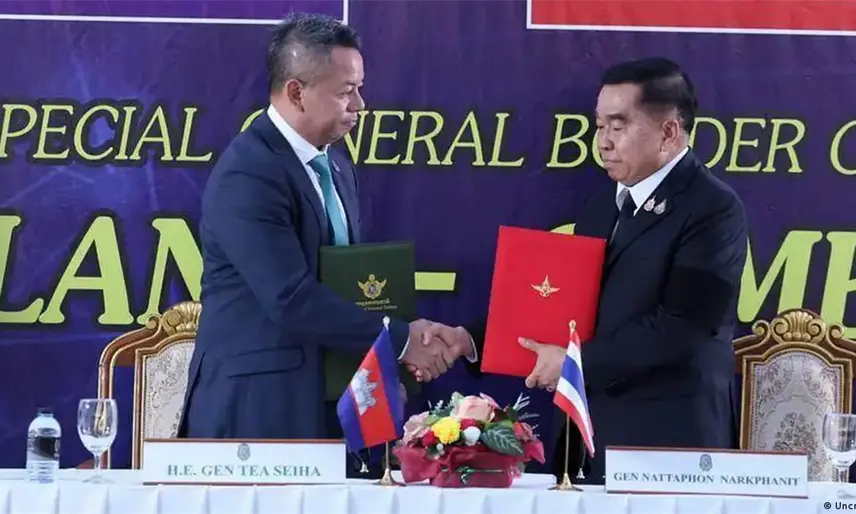 Los ministros de Defensa de ambos países, Tea Seiha de Camboya y Nattaphon Narkphanit de Tailandia, firmaron el pacto en un puesto de control fronterizo, después de que funcionarios militares de menor nivel sostuvieron tres días de reuniones como parte del ya establecido Comité General de Fronteras.