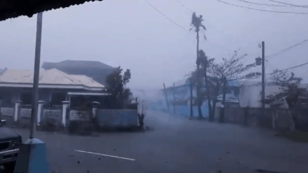 De acuerdo a agencias informativas, las rachas de vientos y la torrencial lluvia derribaron postes de electricidad, provocaron inundaciones y deslizamientos de tierra que sepultaron viviendas.