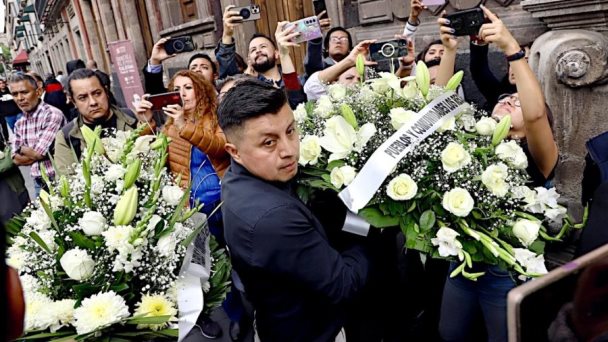 Una vez que ingresaron todos los invitados, la mayoría de ellos con arreglos florales en mano, se cerró la puerta del museo. Mientras tanto, la jefa de Gobierno, Clara Brugada, arribó por la puerta trasera del recinto.