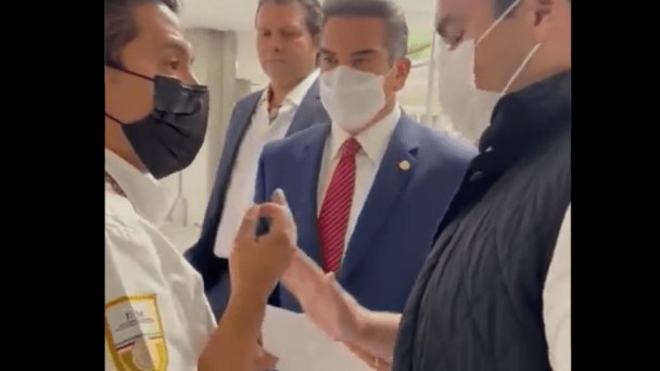 En el video de la presunta retención se ve a Alejandro Moreno acompañado de una persona, quien le hace ver a un agente de Migración que la acción cometida es ilegal, mientras que un sujeto, que dice ser diputado federal, graba los hechos, y a quien en dos ocasiones le piden que deje de hacerlo.