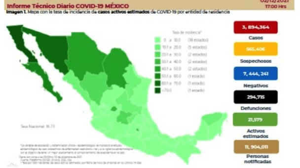 Con estas cifras, el país acumula un total de 3 millones 894 mil 364 casos y 294 mil 715 muertes confirmadas.
