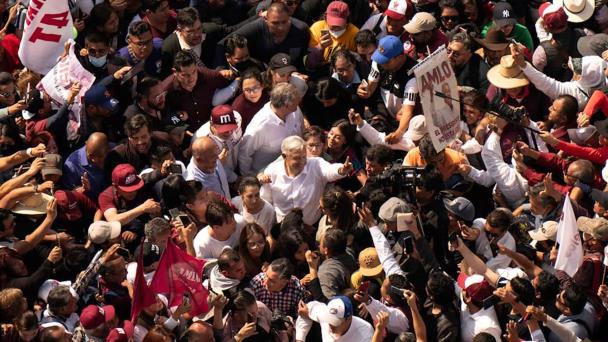 El tabasqueño fue recibido a su arribo al Zócalo capitalino por los mexicanos al grito de “no estás solo” y “es un honor estar con Obrador”, por lo que cuando inició con su mensaje se dijo contento por la convocatoria que reunió, por lo que reiteró su dicho de “amor con amor se paga”.