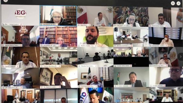 Los secretarios de Gobernación, Educación, Hacienda, Trabajo, Relaciones Exteriores y Economía, sostuvieron este martes una reunión vía remota con los mandatarios estatales, para definir las acciones que habrán de implementar en los próximos días, para reactivar actividades en las regiones donde no se han registrado casos de Covid-19, o bien, han sido mínimos.