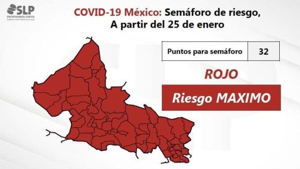 El Gobierno de San Luis Potosí anunció que ante el incremento contagios, hospitalizaciones y defunciones por COVID-19, el estado regresará a semáforo epidemiológico rojo, a partir del próximo lunes 25 de enero.