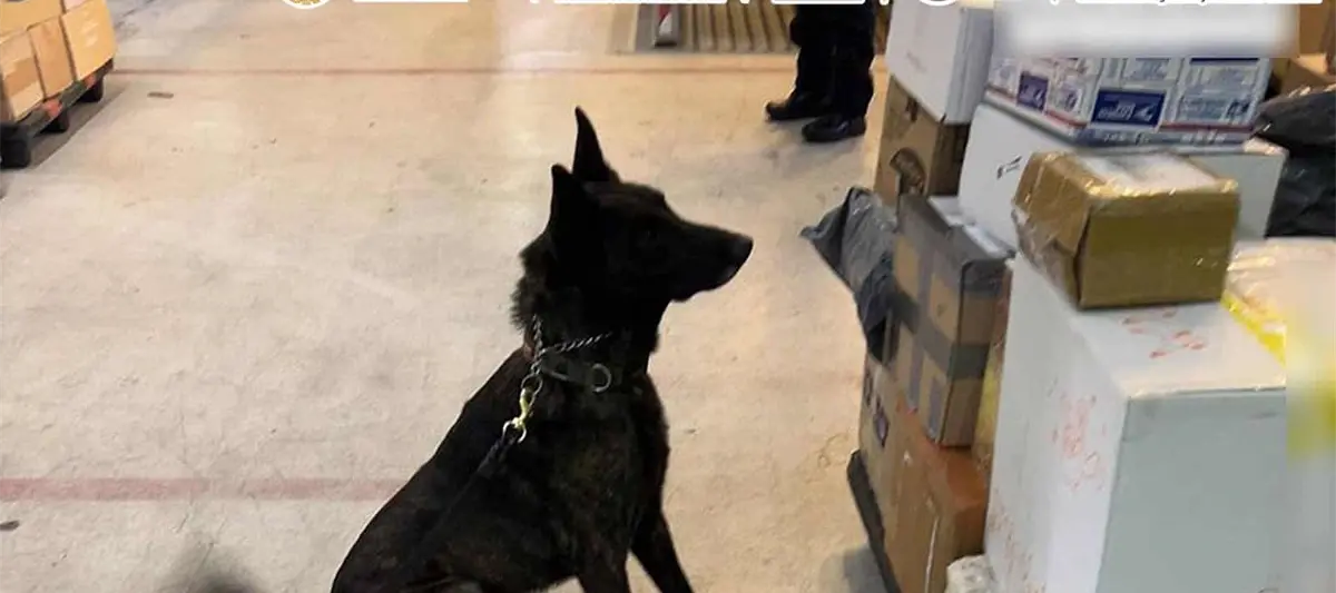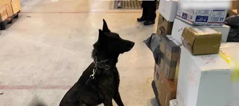Personal de aduanas inspeccionó el bulto con rayos X y, con la ayuda de Néstor, un perro policía, fue registrado como positivo a posible droga.