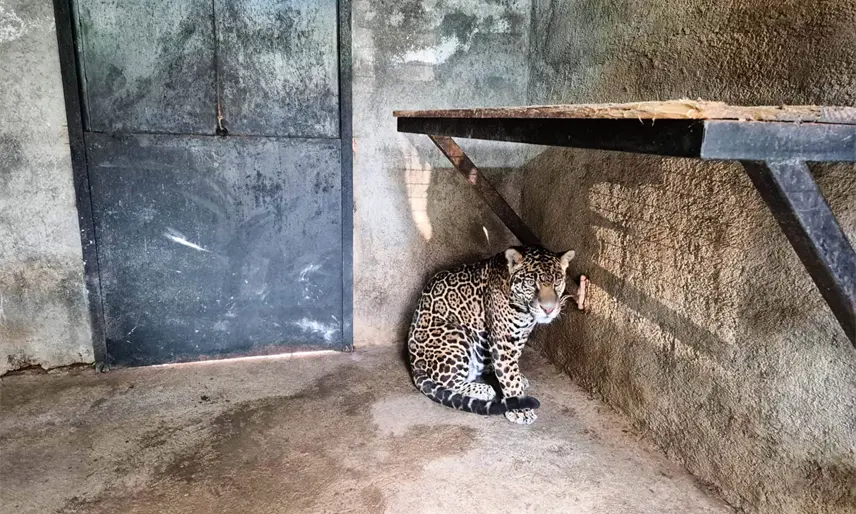 Durante un cateo en un domicilio situado en Jilotepec, los elementos localizaron al interior de una jaula a una Panthera onca.