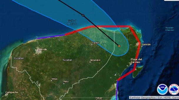 En tanto, que la zona de Prevención por vientos de Tormenta Tropical desde Dzilam hasta Progreso, Yucatán, y desde Tulum hasta Punta Herrero, Quintana Roo.