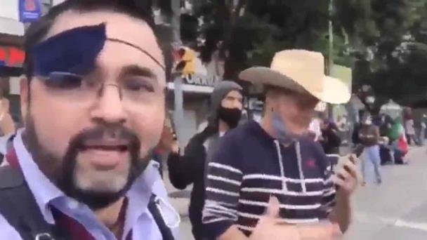 En un video difundido en redes sociales, esta persona quien usa un parche en el ojo tras presuntamente haber sufrido un atentado, se graba mientras insulta a la persona, incluso el parche no lo mantiene en su lugar al momento de la grabación.