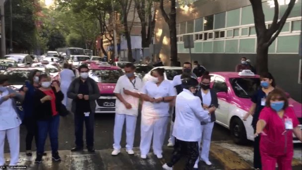 Dentro de los mensajes se logró leer frases como :”No hay cubrebocas”, “estamos en la guerra sin armas”, “sin insumos me estás matando”, entre otros.