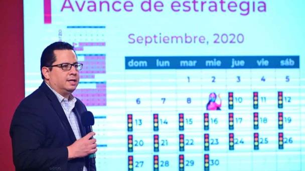 “Y bueno, podemos ver rápidamente el comportamiento que han tenido los casos sospechosos en las últimas semanas, vemos ya ese descenso que inició en la semana número 30, que se estabilizó e inclusive tuvo un incremento en las semanas 33 y 34, y volvemos a ver un descenso ligero ya para el día de hoy de la totalidad de casos sospechosos en la semana número 35; esa tendencia descendente precisamente de porcentaje de positividad que se mantiene, que continúa en todas estas últimas semanas”, apuntó.