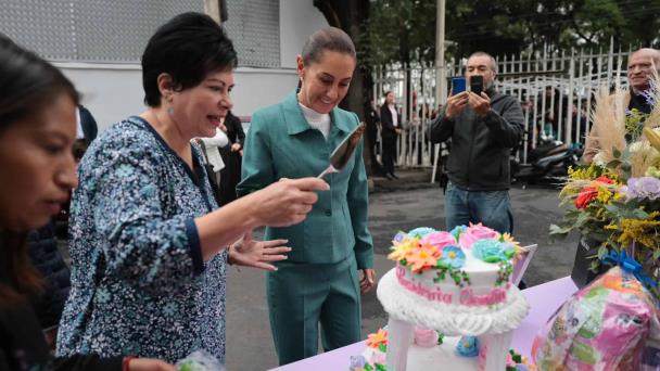 Con pastel, marimba y Simi Claudia, celebran a Sheinbaum por su cumpleaños 62