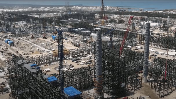 La secretaria de Energía, Rocío Nahle, informó que en las plantas reformadora y catalítica de la refinería Olmeca, de Dos Bocas, se ha concluido el montaje de la totalidad de sus módulos, mientras que en la planta de tratamiento de aguas amargas se han instalado las torres agotadoras.