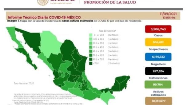 Con estos nuevos datos proporcionados por el Informe Técnico de la Secretaría de Salud, nuestro país llega a los 3 millones 506 mil 743 contagios confirmados y 267 mil 524 fallecimientos desde el inicio de la pandemia.