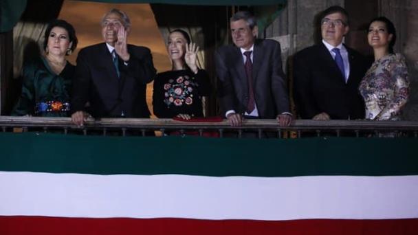 En el mismo balcón estaban el secretario de Gobernación, Adán Augusto López Hernández, la Jefa de Gobierno de la Ciudad de México, Claudia Sheinbaum Pardo y el canciller Marcelo Ebrard Casaubón.