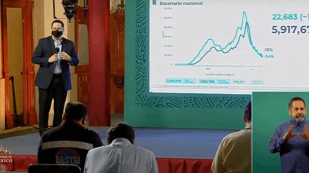 “Como pueden ver el día de hoy, una vez que abrimos la información de la semana 15, que es dos semanas atrás lo que estamos graficando en la curva del comportamiento epidémico, pues bueno, esta semana vuelve nuevamente a presentarse una disminución en la carga de enfermedad, es decir, en la cantidad de personas que están siendo estimadas ya como casos de COVID-19, que para el día de hoy todavía es de un menos 24 por ciento, recordando que han sido de los porcentajes aquellos por encima de las reducciones de 20 por ciento que han sido de los más importantes en las últimas semanas”, señaló.