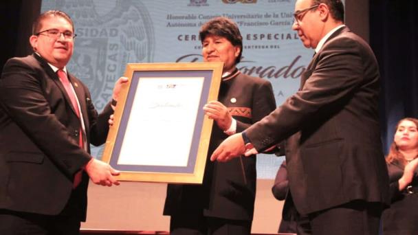 El expresidente de Bolivia, Evo Morales, recibió este miércoles un Doctorado Honoris Causa por parte de la Universidad Autónoma de Zacatecas “Francisco García Salinas”.