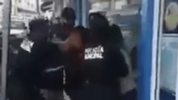 En un video, se observa a los agentes jalonear a una mujer y a un hombre, mientras ellos reclaman que los están lastimando y piden ser soltados, al mismo tiempo que se aferran a un poste para evitar ser detenidos.