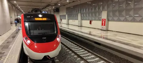 "Pues es un tren tipo Civia fabricado por CAF y cuenta con sistema de videovigilancia, control automático, paro de emergencia, de aire acondicionado, bastante confort para los usuarios con capacidad para más de 700 personas. -Vamos a terminar algunos puentes peatonales que faltan de acceso a las estaciones y después iniciar todo el periodo de prueba de la señalización porque es una señalización automática. Y eso requiere pues su tiempo de colocación y de prueba para evitar cualquier incidente dentro de los trenes o en las vías. Es lo más moderno que existe y ya muy pronto todos nos fuimos al tren-", enfatizó.