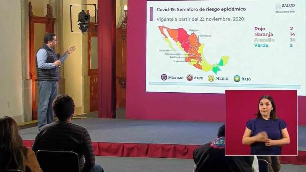 Respecto al mapa epidémico que entra en vigor este lunes, señalo que ninguna entidad incrementó su riesgo epidémico y que algunos estados como Sinaloa, Yucatán, Colima y Baja California, han logrado pasar del semáforo naranja a amarillo. Detalló que Durango y Coahuila, están en color rojo, mientras que Campeche y Chiapas, en verde.