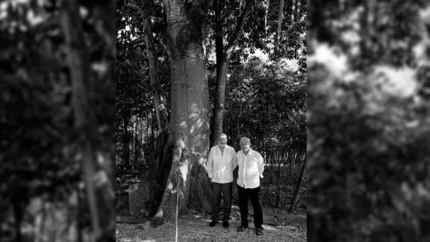 Asimismo, el tabasqueño compartió una fotografía junto al empresario, señalando que aprovechó para mostrarle la ceiba más grande que tiene en su quinta en el estado chiapaneco.