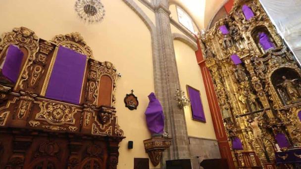 Las santas y vírgenes, fueron tapadas con mantos y papel en en color morado, mismos que habitualmente se utilizan para cubrir todas las imágenes durante el tiempo de la cuaresma, esto desde el Miércoles de Ceniza hasta el Domingo de Resurrección.