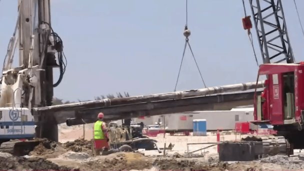 Mediante un video proyectado, se refirió que se continúan en los paquetes 1,2,3 y 4 con la construcción de 4 mil 567 pilas e inclusiones para las 17 plantas de proceso.