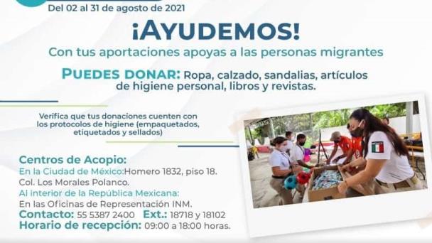 El Instituto Nacional de Migración (INM) lanzó la campaña “Migratón 2021”, que busca que los ciudadanos se solidaricen con los migrantes, donando artículos en buen estado para mujeres y hombres jóvenes y adultos.