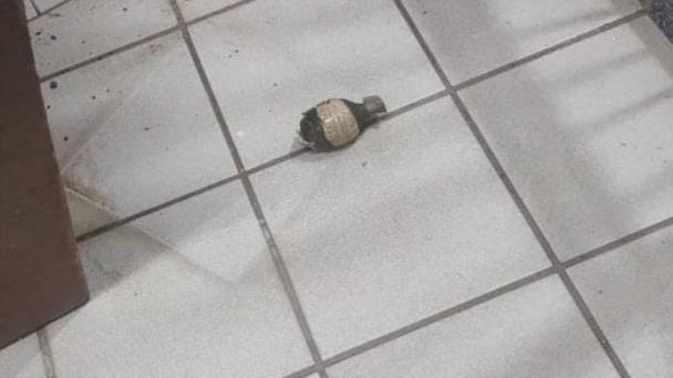 El hombre habría tirado la granada poco antes de que iniciarán las labores en esa dependencia, y afortunadamente no detonó.