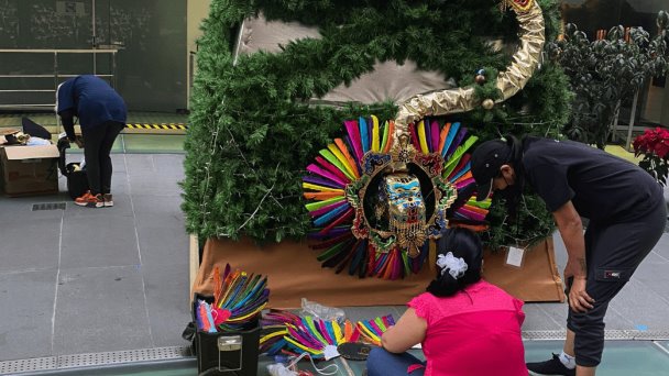 Este martes, causó polémica el árbol de Navidad que fue instalado en el patio del Senado de la República, el cual simula una pirámide de la que desciende Quetzalcóatl (la serpiente emplumada), y en que en lugar de la tradicional estrella, fue colocado un penacho.