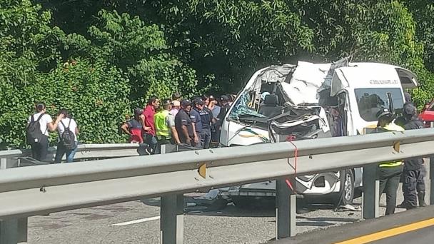 En Chiapas, dos personas murieron y cuatro más resultaron heridas, luego de que a un tráiler se le desprendieran dos de sus llantas traseras y se impactaran contra la parte frontal de una combi del transporte público de la ruta Huixtla-Tapachula.