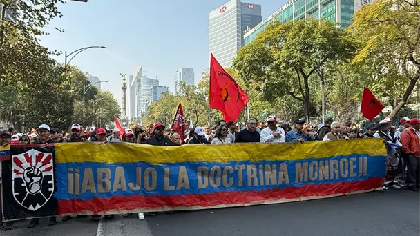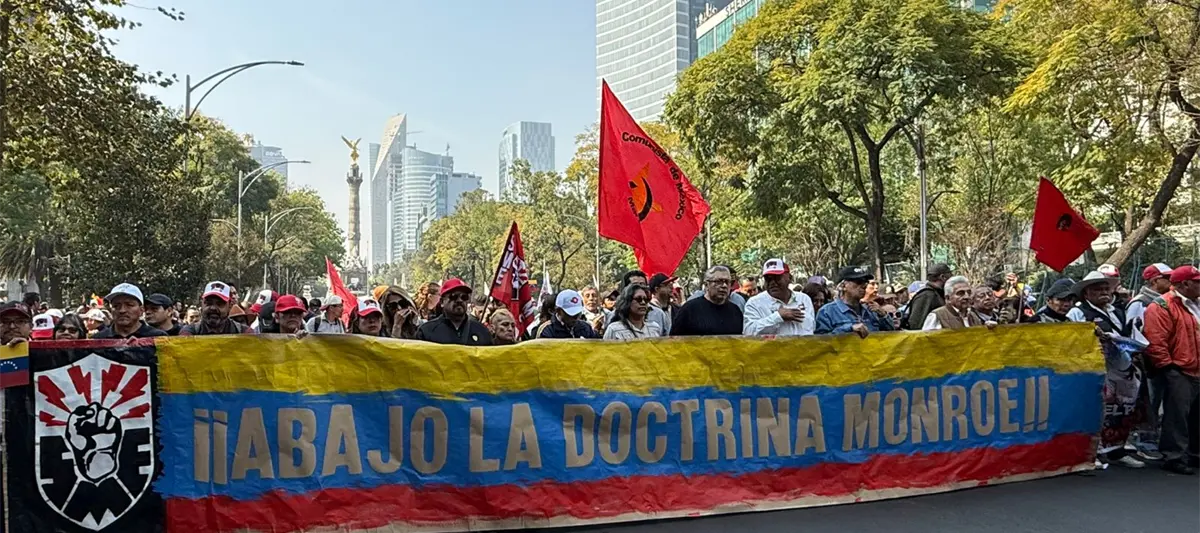 La tarde de este sábado, colectivos, sindicatos y organizaciones civiles marcharon del Ángel de la Independencia a la Secretaría de Relaciones Exteriores (SRE) en Ciudad de México, para expresar su rechazo a la intervención de Estados Unidos en Venezuela y para exigir la liberación del presidente Nicolás Maduro y su esposa Cilia Flores.