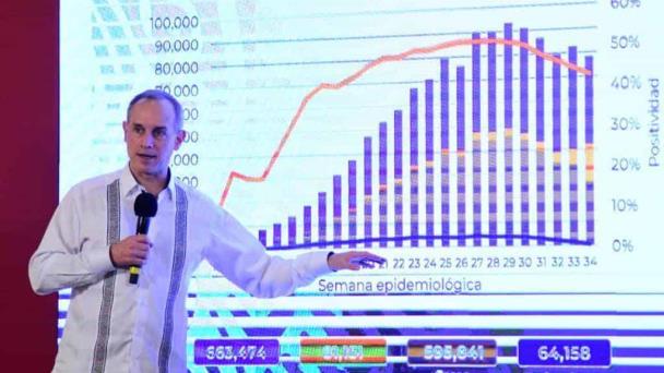 López-Gatell, informó que hasta la fecha hay 64 mil 158 defunciones, así como 595 mil 841 casos confirmados; 81 mil 151 casos sospechosos; además 663 mil 474 personas han dado negativo a la enfermedad.