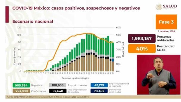 La Secretaría de Salud federal informó que México acumuló 753 mil 090 casos confirmados y 78 mil 492 defunciones por Covid-19.