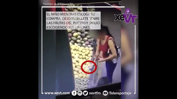 Aunque el menor se aprecia que expone la pérdida del dinero, la mujer no hace por devolver lo que tomó.