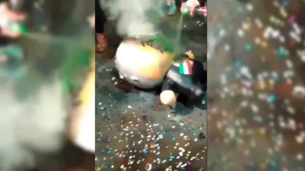 Mujeres queman piñata de AMLO en el “anti-grito” fuera de la CNDH