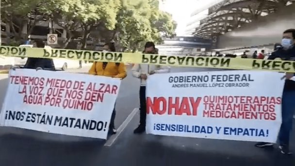 A través de redes sociales, comenzaron a circular videos en donde se observan a los padres con pancartas y mantas, exigiendo al gobierno federal garantice el servicio para los menores con esta enfermedad.