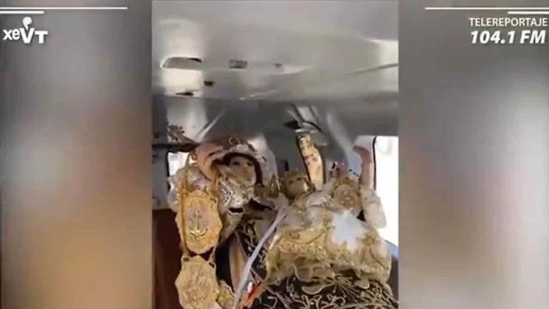 Pasean en helicóptero a la Virgen del Carmen en Campeche